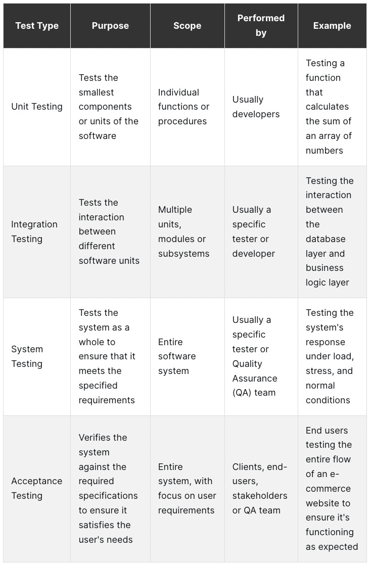 Types of Tests in Software Development