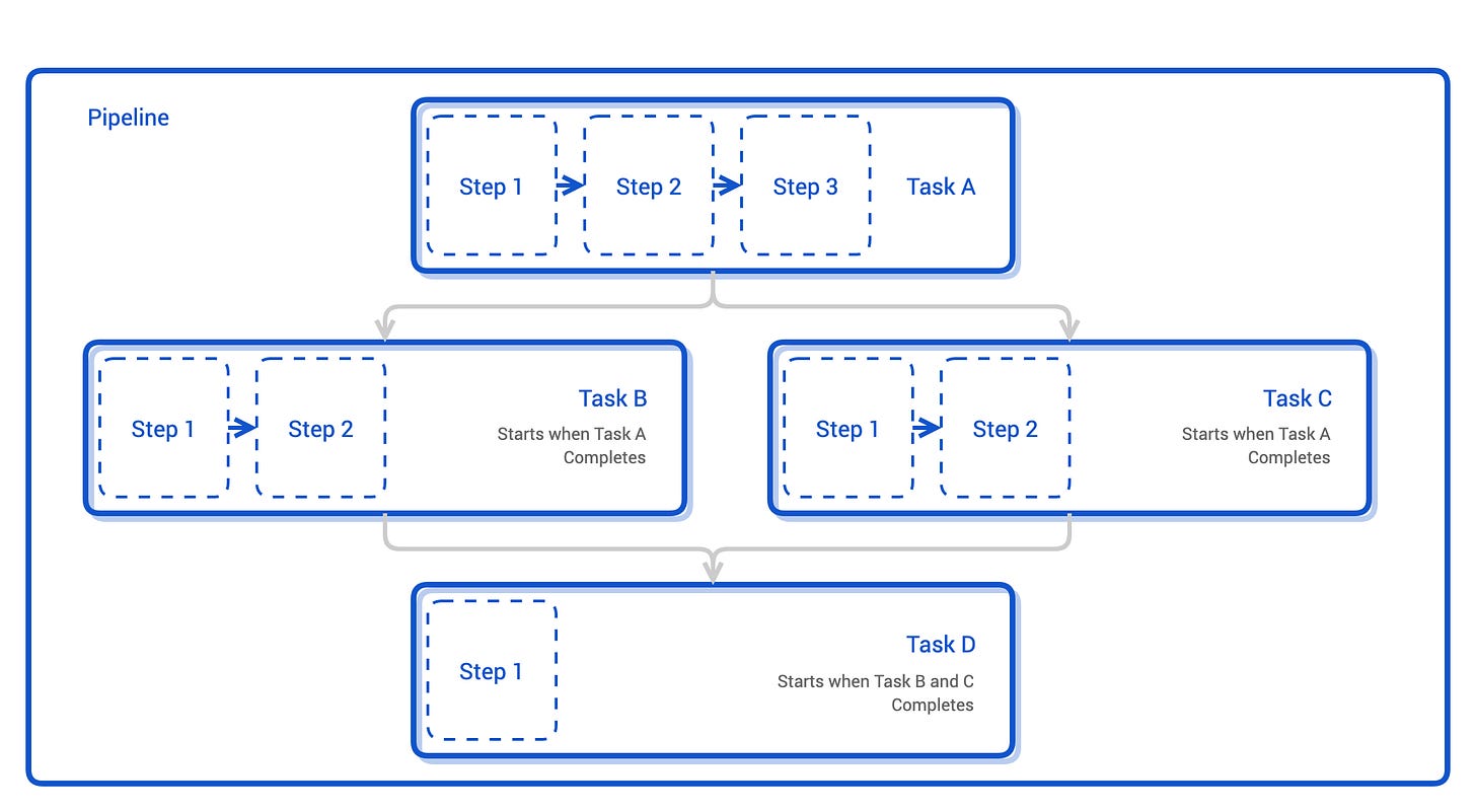 Pipelines are a series of Tasks that are executed in a specified order, optionally with shared resources between them. Each Pipeline defines the flow of execution and manages dependencies between Tasks. Pipelines, like Tasks, are also Kubernetes CRDs, which allows them to be versioned, reused, and shared across teams.